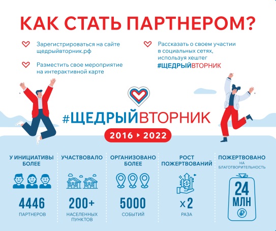 Проект #ЩедрыйВторник координирует фонд «Культура благотворительности». Более подробная информация размещена на официальном сайте акции.