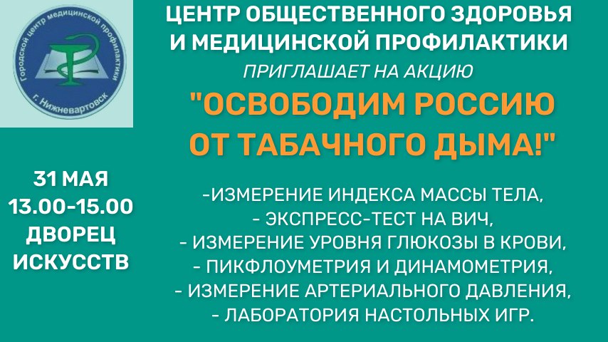 Центр общественного здоровья и медицинской профилактики (филиал в г. Нижневартовске) ежегодно организует площадку, где свой вклад в борьбу с курением вносят городские учреждения здравоохранения.