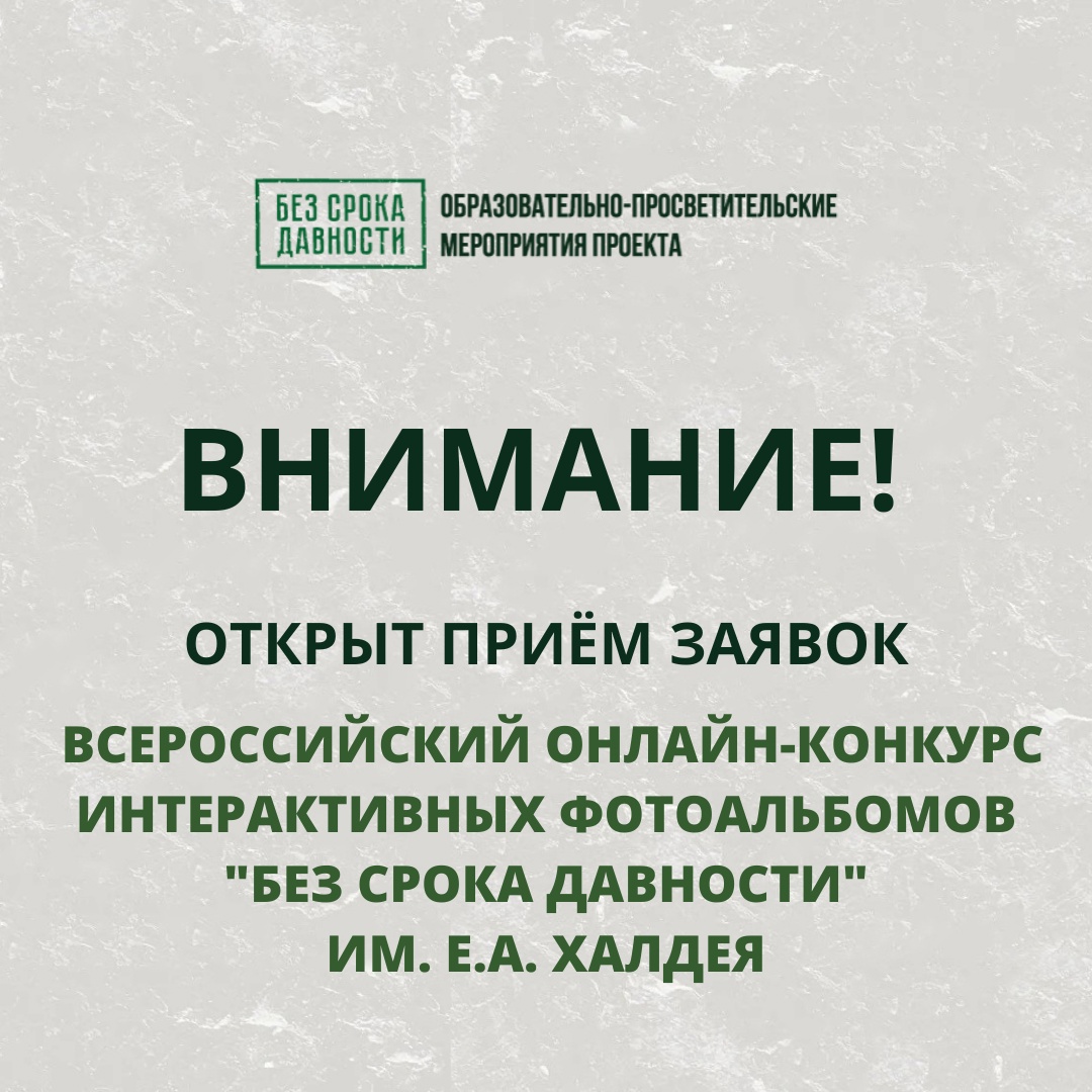 Открыт приём заявок на участие во Всероссийском онлайн-конкурсе интерактивных фотоальбомов «Без срока давности» имени Е.А. Халдея.