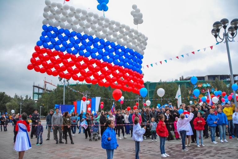 Кульминацией действа стал флешмоб. Его участники сообща исполнили государственный гимн и запустили в небо воздушные шары цветов российского триколора.