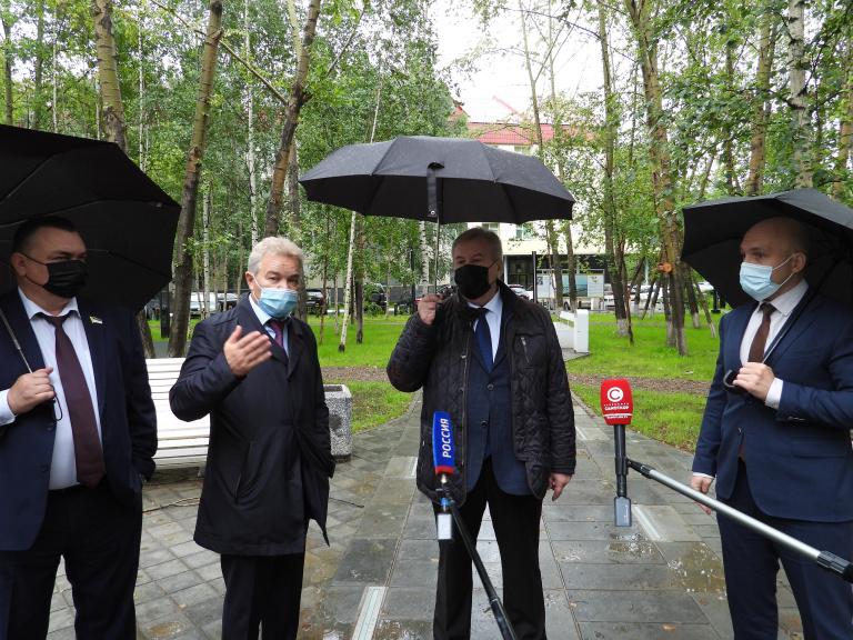 Сегодня в рамках рабочего визита в Нижневартовск спикер окружного парламента Борис Хохряков совместно с председателем Думы Максимом Клецем и представителями администрации муниципалитета посмотрел благоустройство города. В частности, они посетили сквер «Героев Самотлора».
