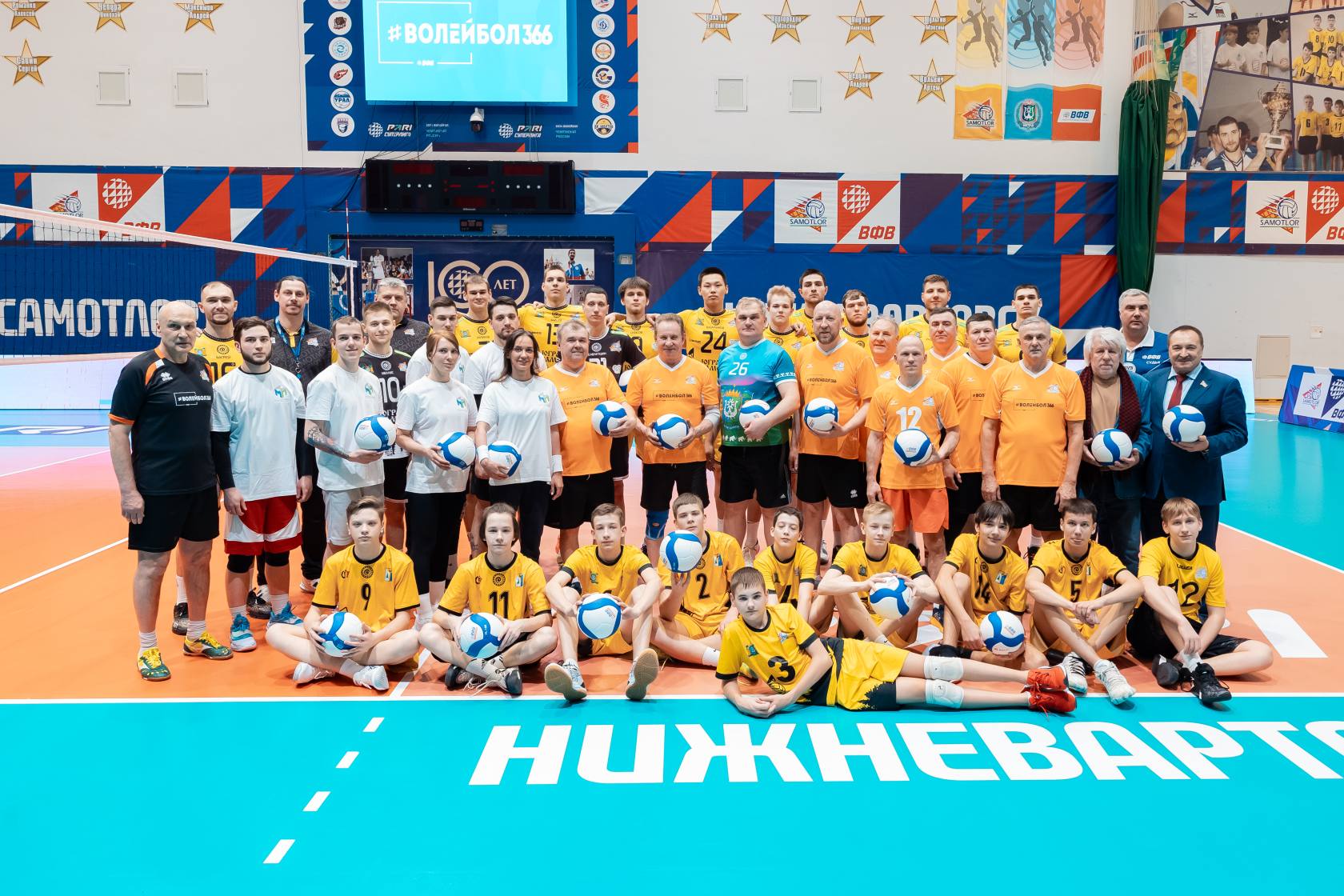 волейбольного клуба «Самотлор» в разные годы. А затем предоставили возможность сыграть товарищеский матч по волейболу со своими молодыми коллегами из