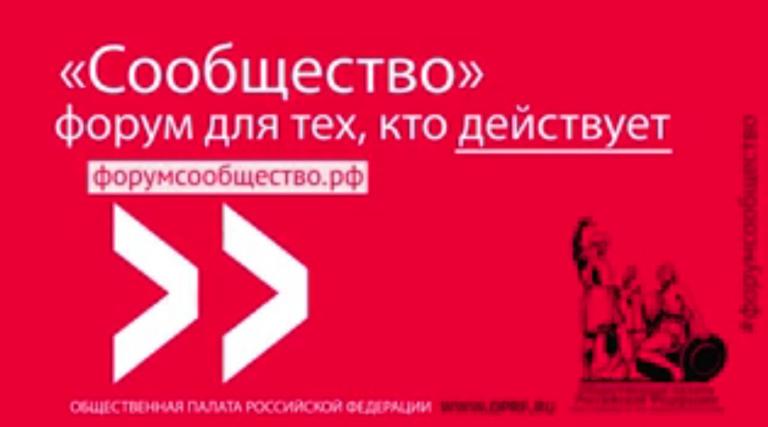 Форум «Сообщество» — это открытое рабочее пространство для всех гражданских активистов и неравнодушных людей, которые занимаются социально направленной работой. Это конструктивная площадка для знакомства, обмена опытом, взаимодействия гражданских активистов с государственными и коммерческими структурами, создания здоровой конкуренции в «третьем секторе» и презентации системы поддержки гражданских инициатив от Общественной палаты Российской Федерации.