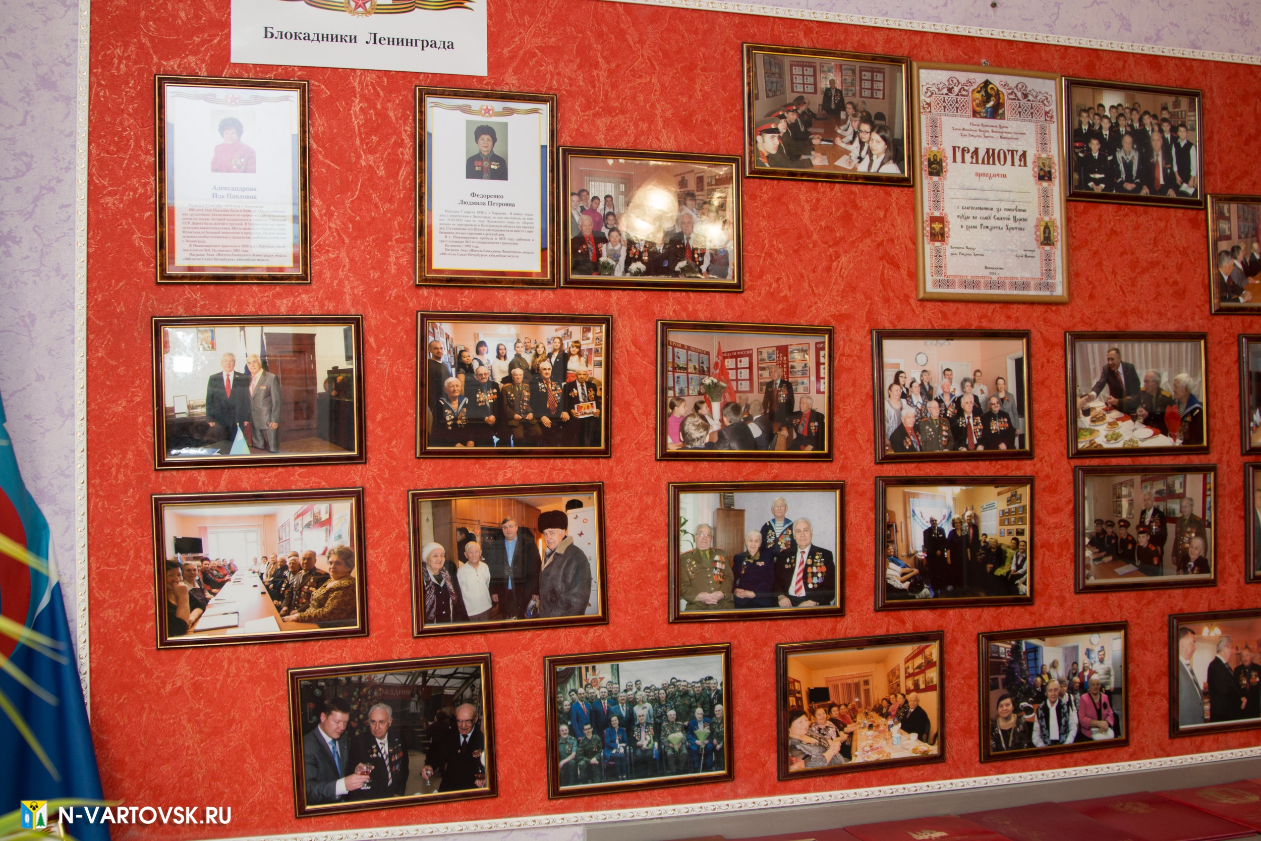 В гости к ветеранам трудового и военного фронта пришел глава города Василий Тихонов. Здесь он осмотрел музейные экспозиции. Одна из них посвящена вартовчанам - участникам Великой Отечественной войны. Рядом с портретами - фотохроника, медали, исторические документы. Зал «Право на память» открыт в 2014 году к 70-летию Дня Победы.