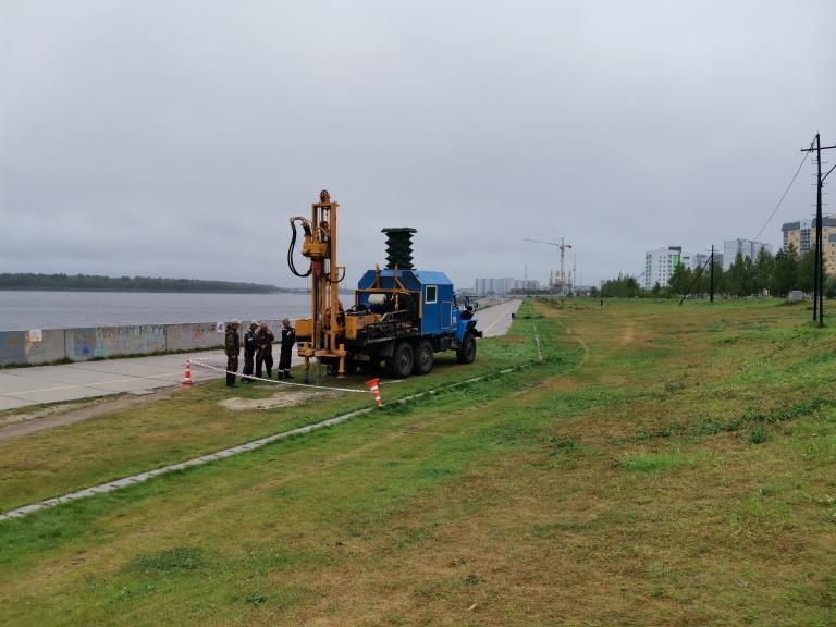 Анализ текущего состояния и безопасности берегоукрепления включает также изучение геологической части. Специалисты производят отбор проб грунтов на разных участках, чтобы определить их плотность залегания. Для сбора проб используют буровую установку статического зондирования для проверки плотности грунтов методом трения и вдавливания. Общая протяженность берегоукрепления в Нижневартовске – 4 км 200 метров. Специалисты производят бурение каждые 50-100 метров. Пробы берутся на интервалах 1,5-2 метра до глубины 25 метров.