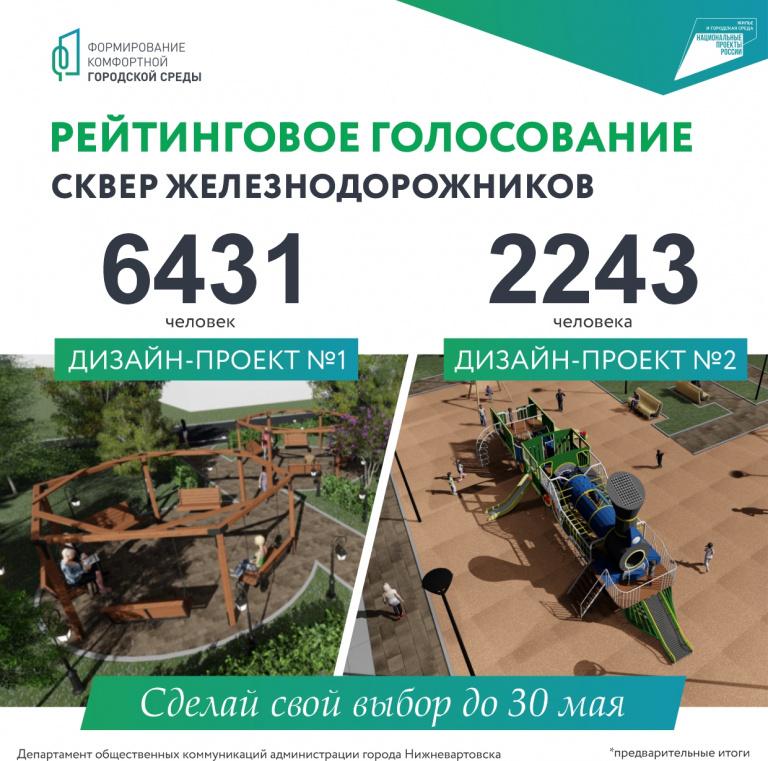 Продолжается голосование за выбор лучшего дизайн-проекта по благоустройству сквера Железнодорожников. На реализацию проектов деньги выделят по программе федерального финансирования. На сегодняшний день за проекты благоустройства свои голоса отдали более 8 тысяч нижневартовцев. Голосование продлится до 30 мая.