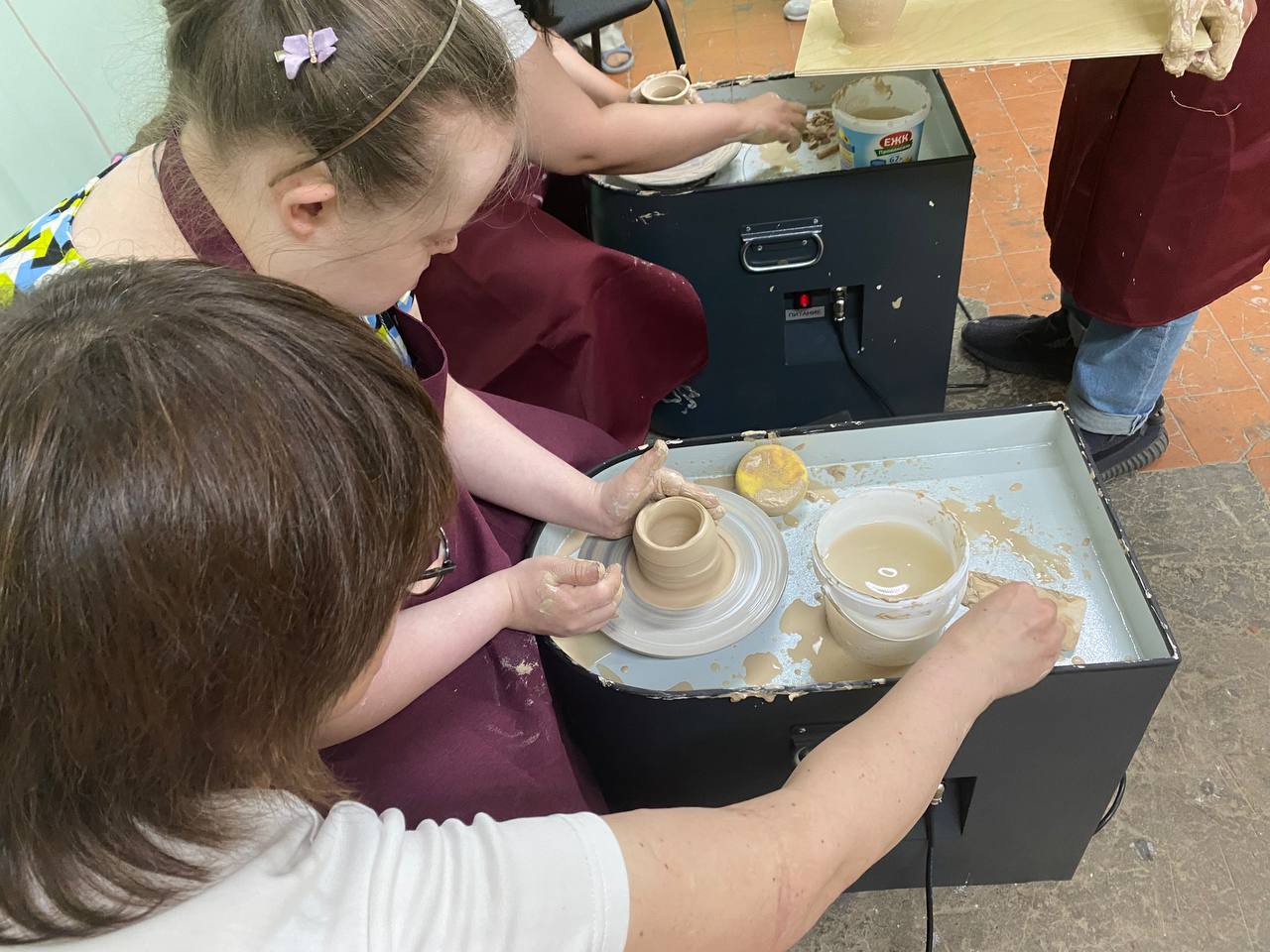 «Мы сотрудничаем с центром, помогаем и обучаем вместе с сыном ребят гончарному мастерству. Очень полезное творчество. Глина успокаивает, расслабляет руки, положительно действует на мозговую деятельность. Замечаем, что и взрослые, и дети, при работе с глиной, даже начинают вести себя иначе - улыбаются. Конечно, пока им сложно, не все получается, но мы обязательно всему научим», - рассказала руководитель дизайн-студии «Ирис» Ирина Быкова.