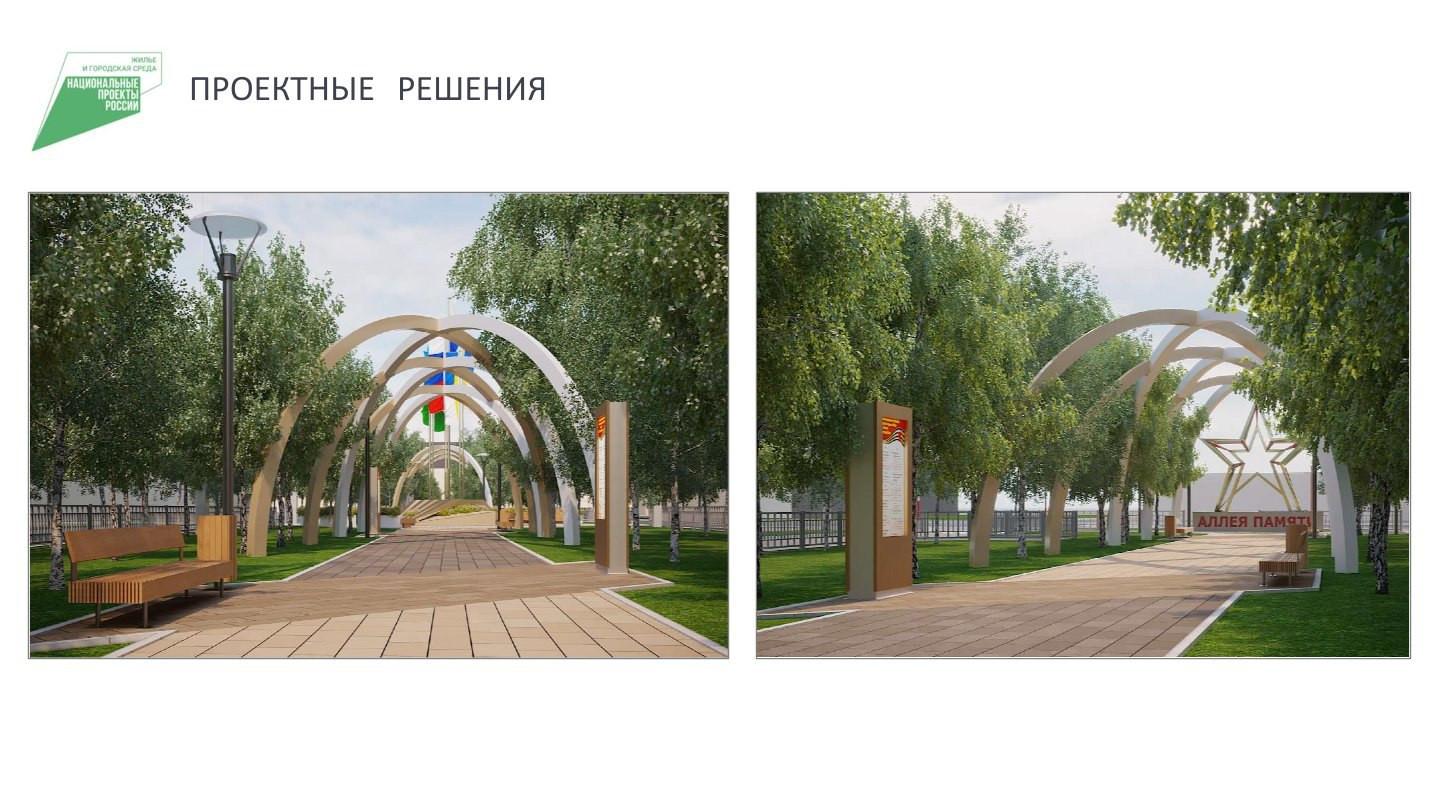 Территория объекта благоустройства расположена в створе улиц Мира и Ленина (за Дворцом искусств) на территории между микрорайонами №3 и №4 (центральная часть города). Проектом предусмотрено устройство аллеи Памяти с созданием пешеходных зон с зонами отдыха, автомобильных стоянок, освещение и озеленение территории, установка МАФов (лавочки, урны).