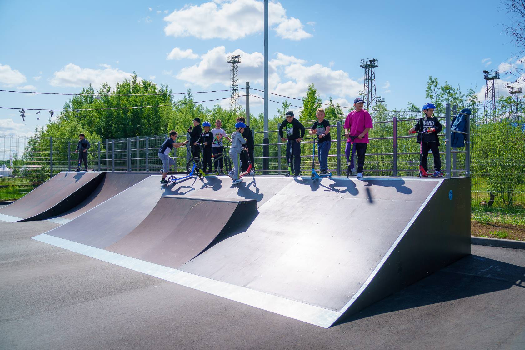 Площадь спортивного сооружения составляет 4,2 тысячи квадратных метров. На территории установлены 11 профессиональных базовых фигур – каскады трамплинов, зоны разгона и скольжения. Площадка адаптирована для занятий на скейтбордах, стритбордах, агрессив-роликах, велосипедах ВМХ, самокатах. На объекте оборудовали и уникальную для региона конструкцию – пул, представляющий собой чашу площадью 10 на 15 метров и глубиной 1,5 метра.