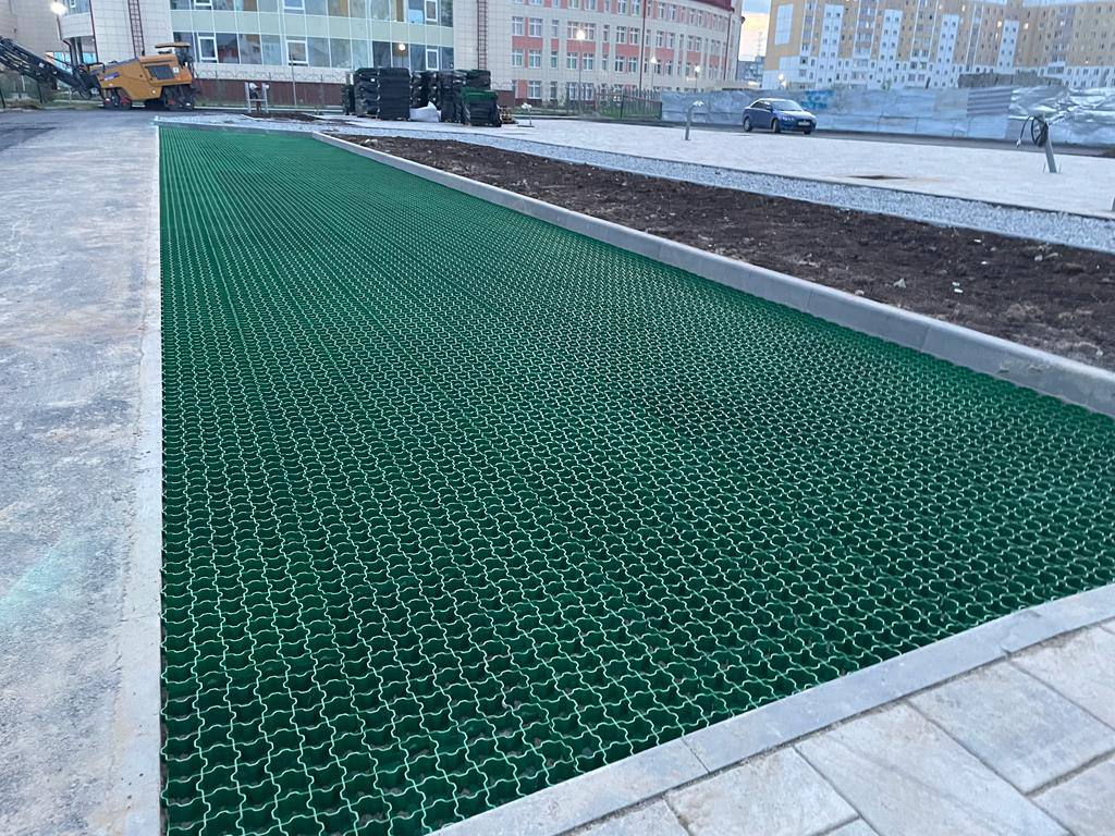 В настоящее время выполнено строительство экопарковки и ведется озеленение. Здесь используют рулонный газон, такой же как на новом бульваре набережной. Траве нужно до полутора недель, чтобы прижиться. Части с зеленью, которые не приживутся, - заменят. На территорию будет доступен въезд с улицы Героев Самотлора, также по проездам территории микрорайона.