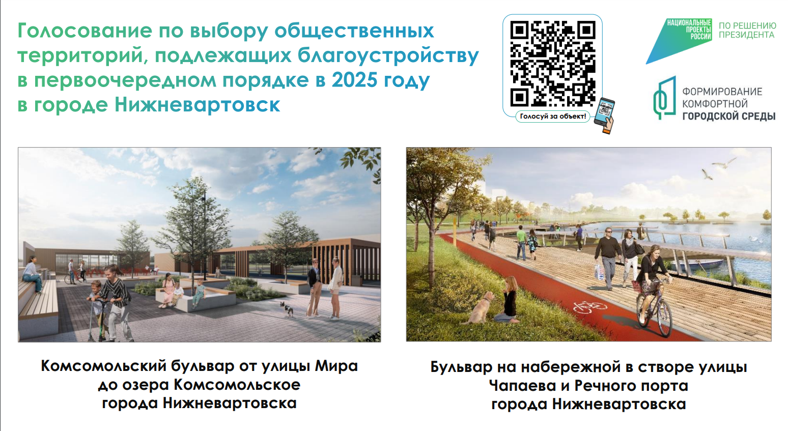Объекты благоустройства включены в народную программу «Карта развития Югры» и находятся на контроле Команды Югры. Всероссийское голосование по выбору новых объектов благоустройства проходит по программе нацпроекта «Жилье и городская среда», созданного по решению Президента России.