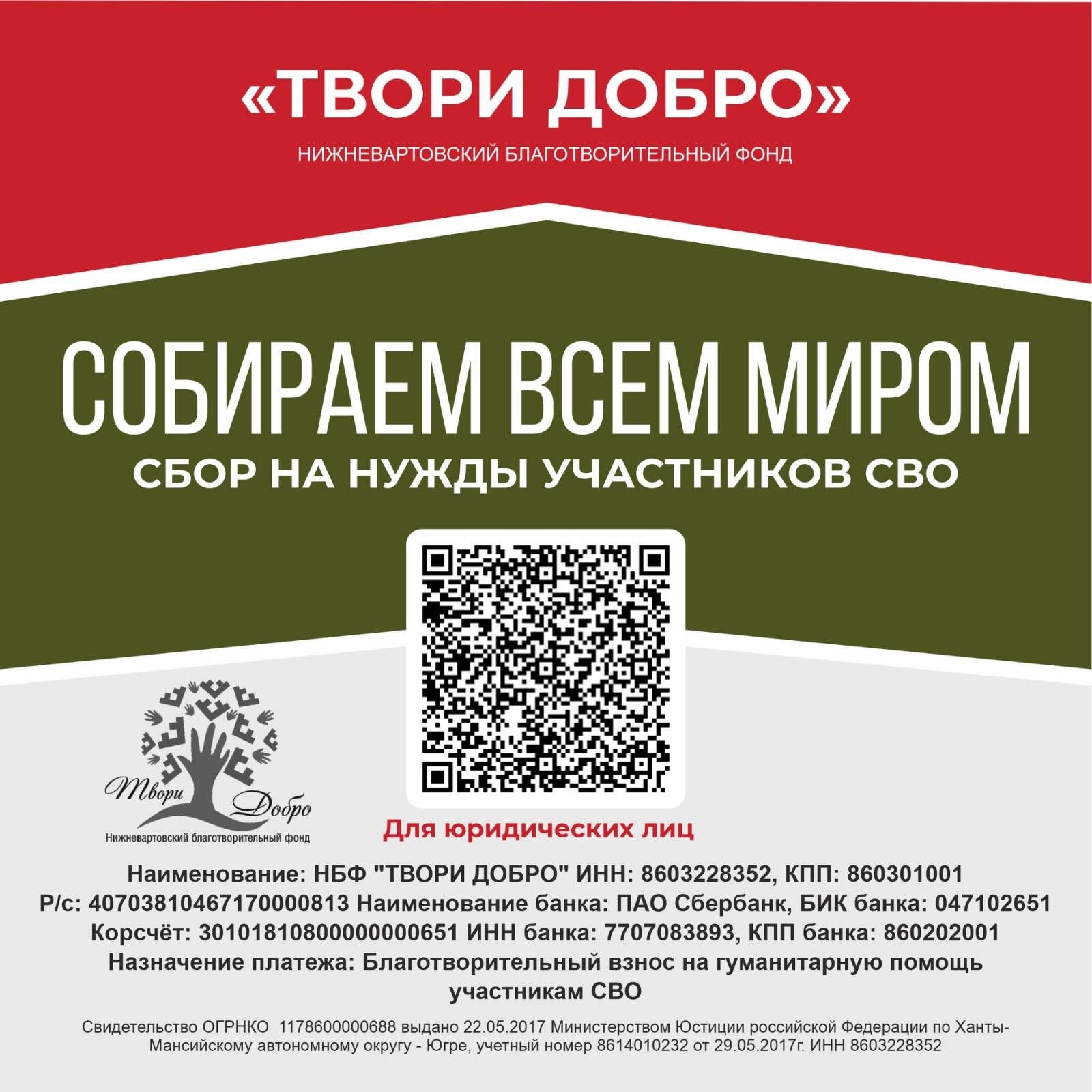 Напомним, что история фонда «Твори добро» началась с объединения нескольких предпринимателей города, которые помогали по мере возможности. Первый руководитель фонда Василий Сочилин предложил использовать имеющийся ресурс для нужд СВО. При поддержке администрации города удалось вовлечь в общее дело и других представителей местного бизнес-сообщества. Инициаторами выступили общественные организации Нижневартовска. Глава города Дмитрий Кощенко поддержал общественников.