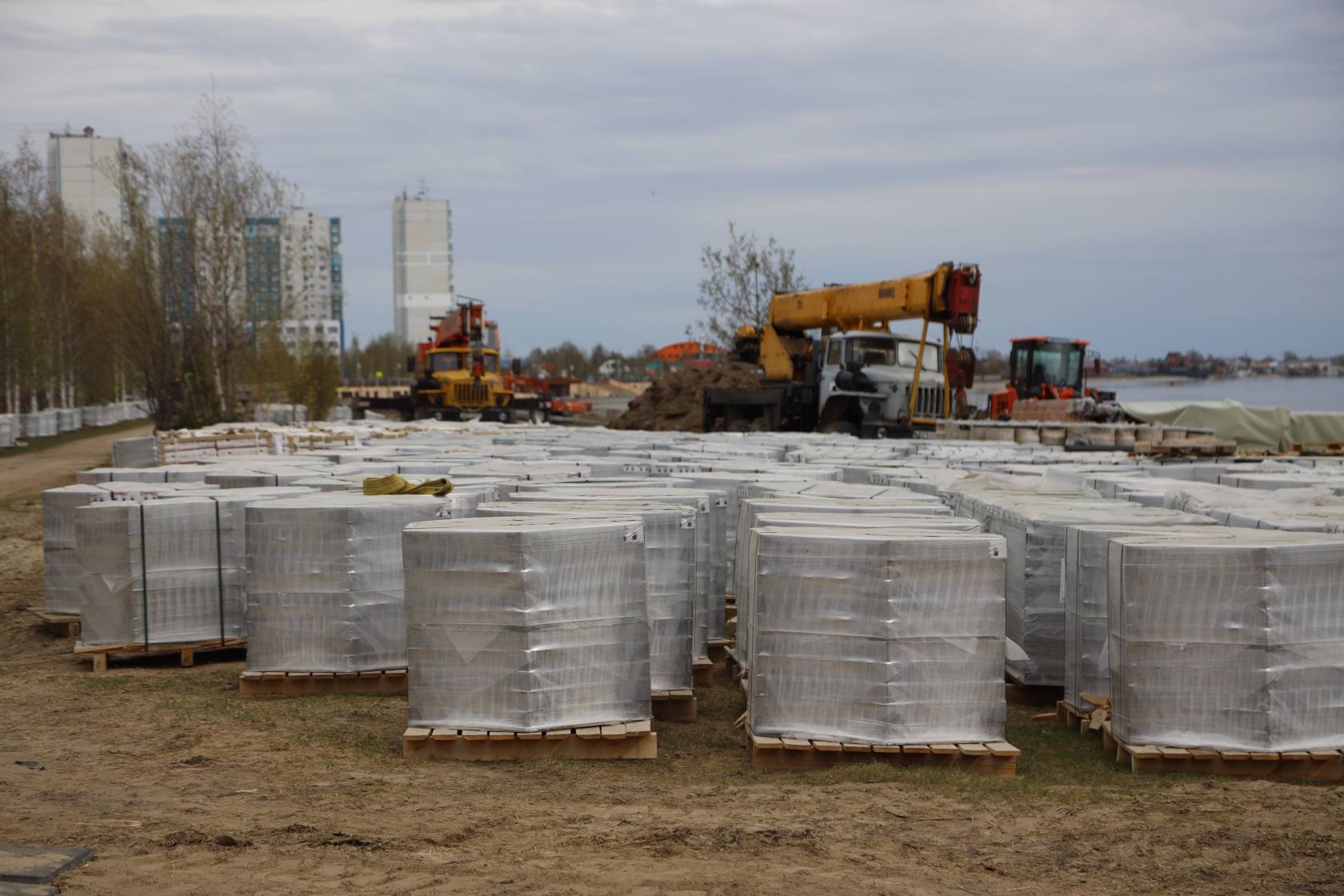 Работа продолжается на участке набережной между улицами Чапаева и Ханты-Мансийской. Подрядчик ООО «Самар-Строй» выполняет благоустройство на территории протяжённостью 465 метров.