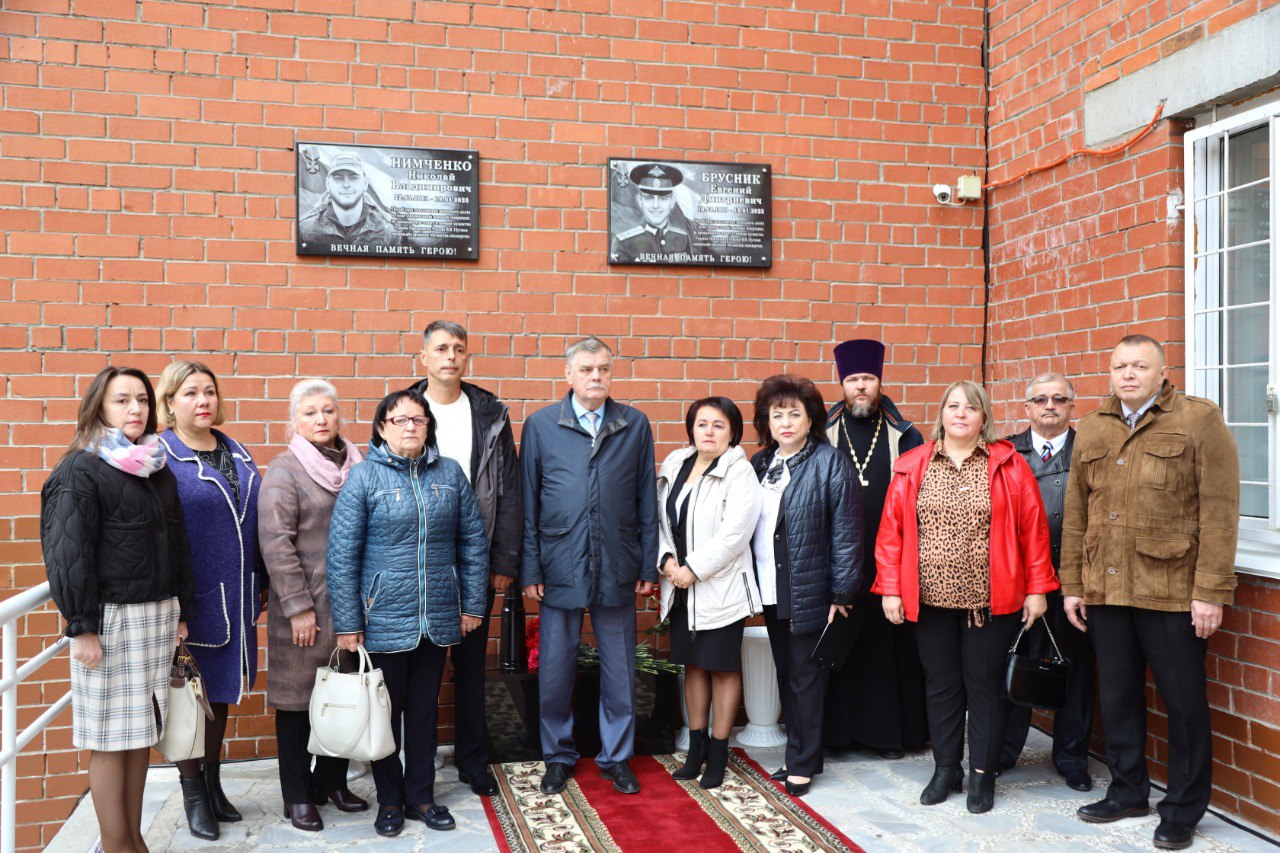 По инициативе педагогического коллектива, директора школы Галины Гасымовой и депутата Тюменской областной Думы Вячеслава Танкеева на здании 42-й школы сегодня открыли памятные доски в честь выпускников образовательного учреждения. Они посвящены Евгению Бруснику и Николаю Нимченко - героям, погибшим в ходе выполнения задач специальной военной операции.