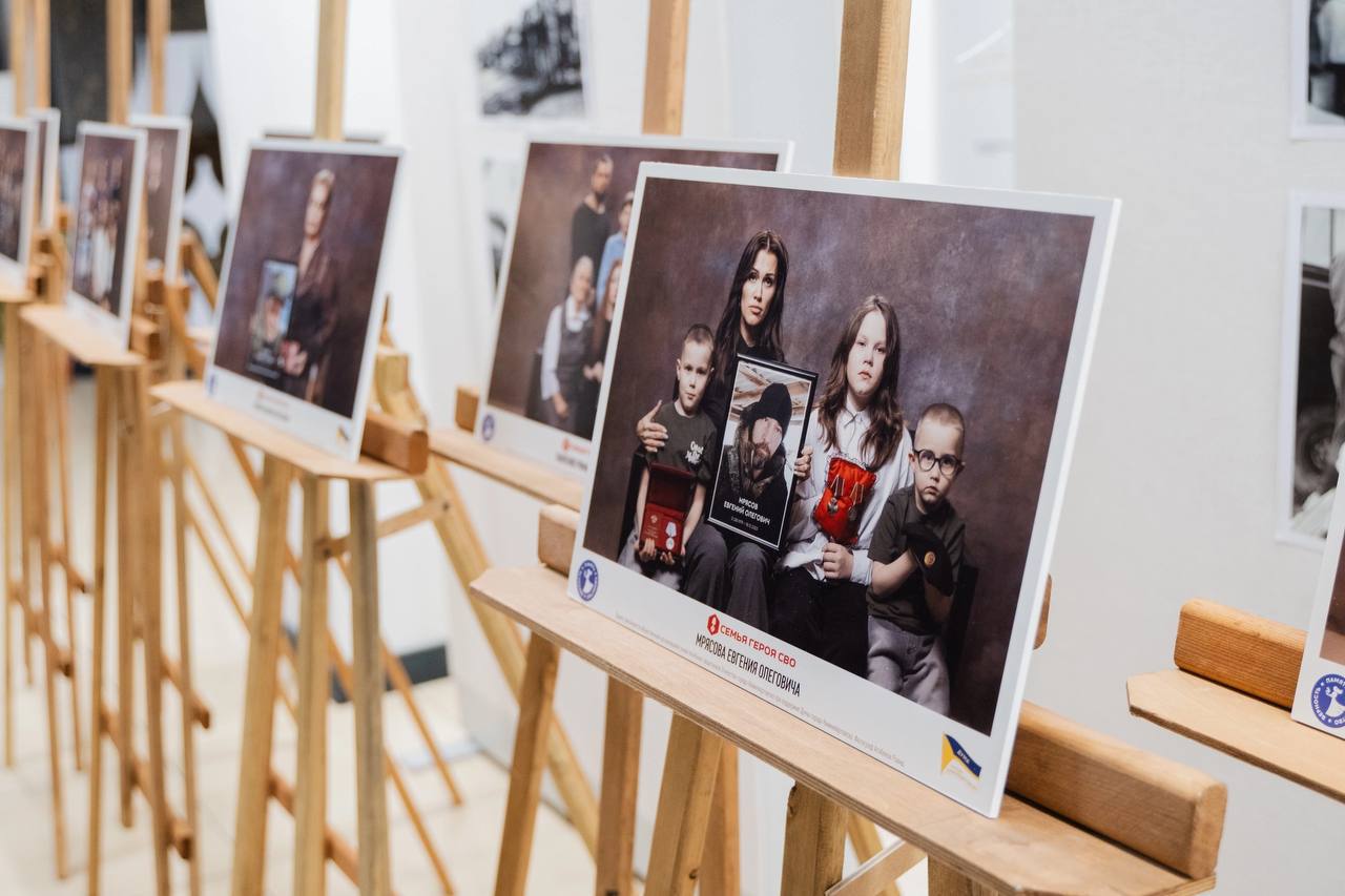 Передвижная фотовыставка «Семья героя специальной военной операции» на несколько дней разместилась в арт-резиденции «Ядро».