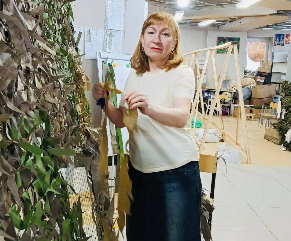 Вартовчанка с ноября 2023 года плетет маскировочные сети и костюмы для бойцов в зоне СВО. Более 1000 изделий сделаны ее руками и руками тех, кого она обучила. Валерий Голованчук - сотрудник Молодежного центра Югры, который поддерживает гражданские инициативы.