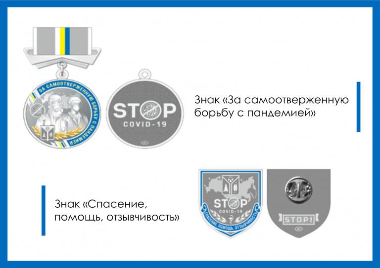 Разработано два знака отличия. В частности, знаком (в виде медали) «За самоотверженную борьбу с пандемией» могут быть удостоены нижневартовцы, чье профессиональное мастерство, высокие личные достижения в области здравоохранения и других сферах деятельности помогли сохранить благополучие города в период эпидемиологической нестабильности, жизнь и здоровье горожан. А знак «Спасение, помощь, отзывчивость» создан для поощрения жителей города за самоотверженный труд, а также добровольческую деятельность в период борьбы с пандемией.