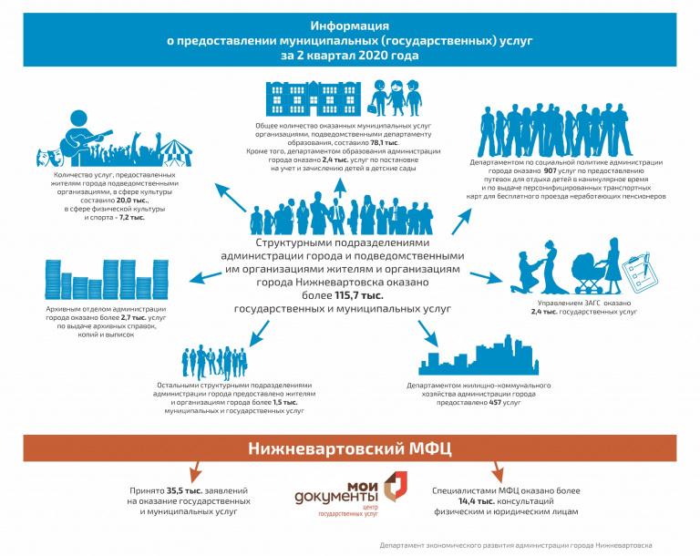 Во втором квартале 2020 года структурными подразделениями администрации города и подведомственными ей учреждениями было оказано более 115,7 тыс. государственных и муниципальных услуг.
