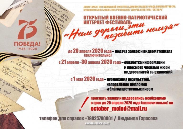21 апреля стартует открытый военно-патриотический интернет-фестиваль «Нам дороги эти позабыть нельзя». Он посвящен 75-й годовщине Победы в Великой Отечественной войне.