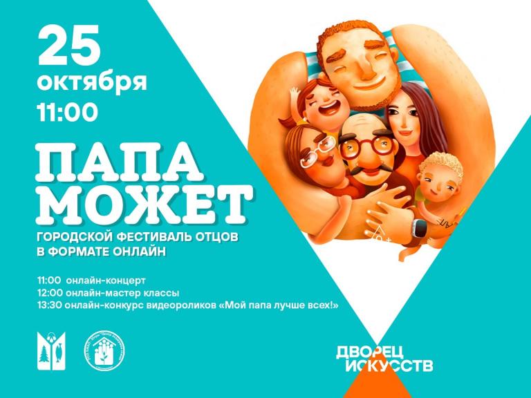 В онлайн-формате пройдет городской фестиваль отцов «Папа может». Мероприятие состоится 25 октября в 11 часов в официальной группе МБУ «Дворец искусств» в социальной сети «ВКонтакте».