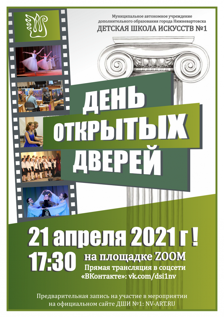 В программе – информация о школе, презентация отделений школы: хоровое, музыкальное, хореографическое, художественное, театральное, выступления индивидуальных исполнителей и творческих коллективов. Мероприятие будет транслироваться в прямом эфире на официальном сайте детской школы искусств №1 http://www.nv-art.ru/. Подробная информация о приеме детей размещена на официальном сайте школы.