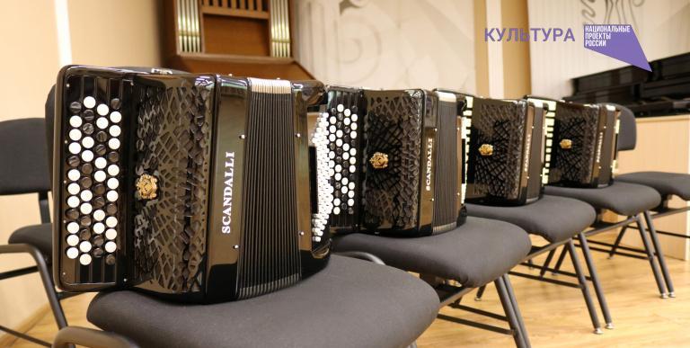 Кроме того, при поддержке нацпроекта пополнился парк музыкальных инструментов детской школы искусств №1. Приобретены четыре ученических баяна и два аккордеона фирмы «Scandalli» - эталона аккордеонного производства.