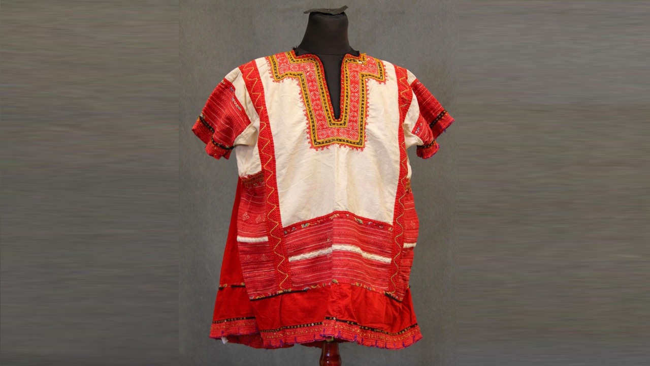 «Согласно легенде, этот уникальный предмет одежды бытовал в мастерской известного российского художника Евгения Вахтангова. Идентичный по крою и декору костюм также можно наблюдать в исторических кинофильмах, созданных в советский период», - рассказала Анастасия Зарицкая.