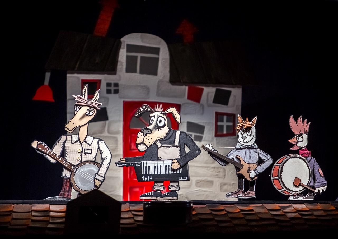 «На сцене разворачивается сюжет в жанре документального кино, где прошлое переплетается с настоящим. Способствуют этому двухплановые декорации. Внизу зритель видит ток-шоу с известной группой «Бременские музыканты», а наверху – воспоминания о том, как познакомились герои Осел, Пес, Кот, Петух, как нашли дом и свое музыкальное направление, сочинили хиты и обрели славу. В постановке использованы различные виды кукол. Режиссером выступил Сергей Усков, композитором – Антон Эльдаров. Действо на сцене длится час, оно полно ярких красок, замечательной музыки и позитива», – говорит Елена Летова.