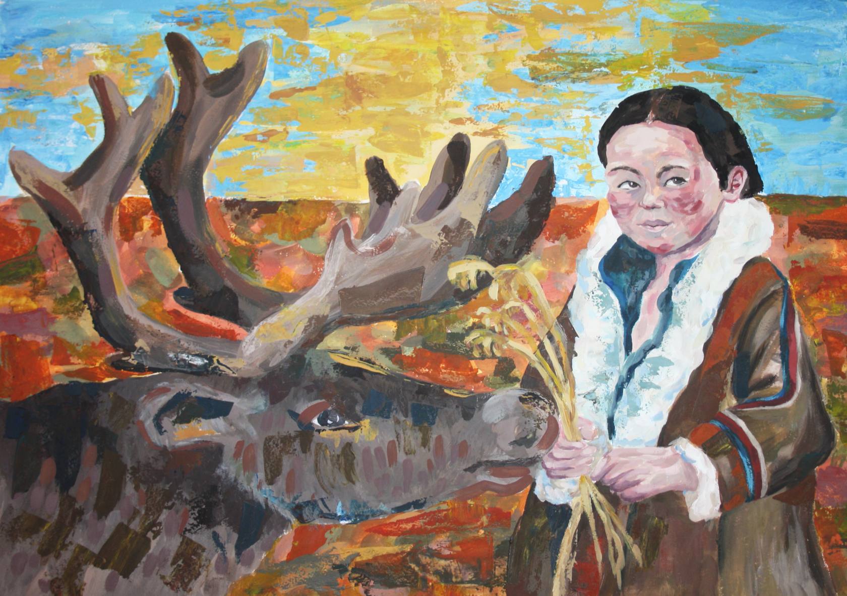 В экспозиции «Чувствуя сердцем» Кира Лазарова, используя цветовые поиски и эксперименты, погружает зрителя в этнические темы в графическом и живописном исполнении.
