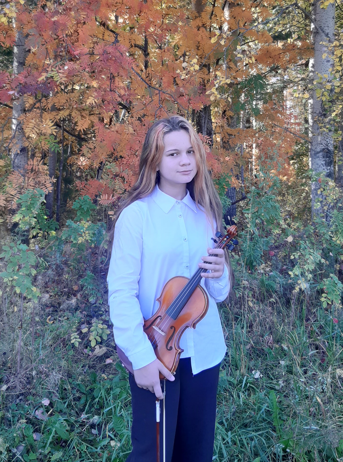 Юная скрипачка учится в 4 классе у преподавателя Марковой Екатерины Александровны, концертмейстер – Щиголева Виргиния Ионо.