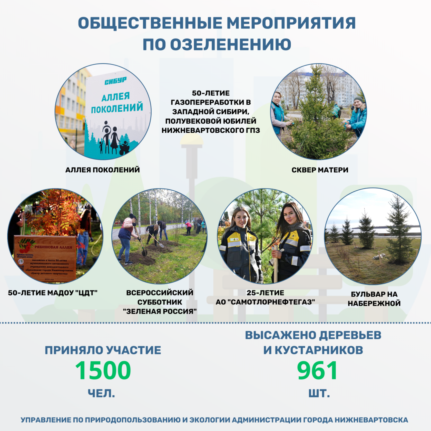 В 2024 году активно участвовали в мероприятиях по озеленению городских территорий сотрудники различных предприятий, школьники, студенты, представители общественных организаций.
