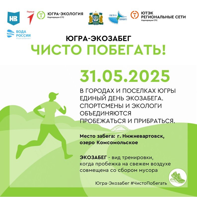 31 мая в рамках проведения XXII Международной экологической акции «Спасти и сохранить» в Нижневартовске состоится спортивно-экологическое мероприятие «Югра-Экозабег. Чисто побегать!».