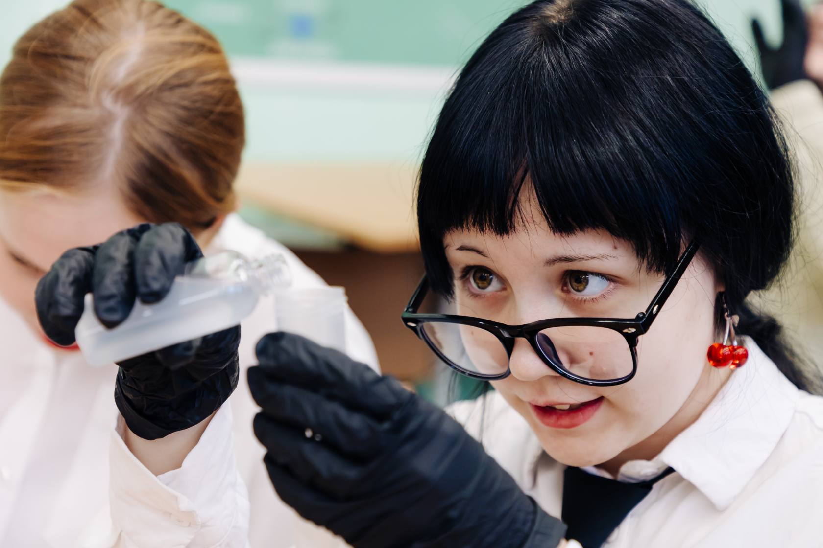 Школьники знакомятся с нейросетью, разработанной СИБУРом на базе одной из языковых моделей с искусственным интеллектом, погружаются в мир полимеров и проводят химический эксперимент, разработанный основателем международного детского научно-популярного проекта «Sciencely».
