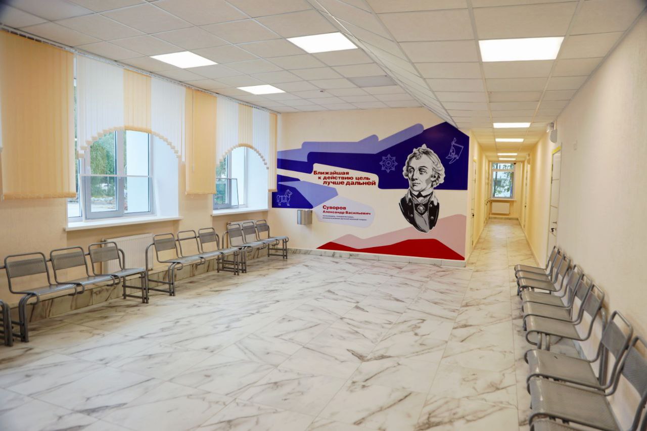 Сейчас завершается благоустройство вокруг учреждения. Здесь выполняют укладку тротуарной плитки, бордюров, озеленение территории, также установят скамейки, малые архитектурные формы, уличное освещение и велопарковки.