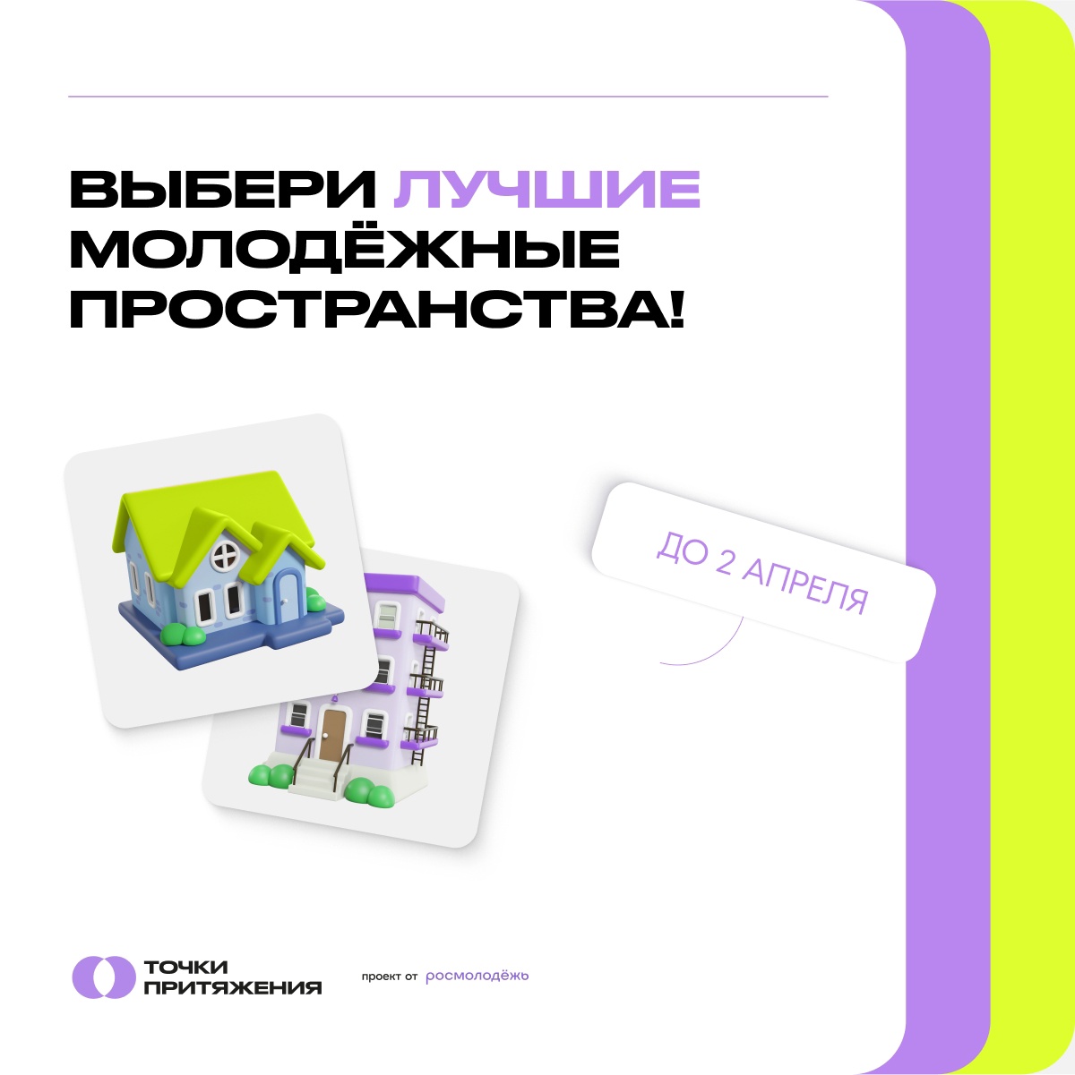 Федеральное агентство по делам молодежи проводит с 6 марта по 2 апреля проект «Точки притяжения». Его суть - определить 300 лучших пространств России для молодёжи, где каждый может найти единомышленников, получить новые знания от экспертов, а также помощь для реализации своих идей и проектов.