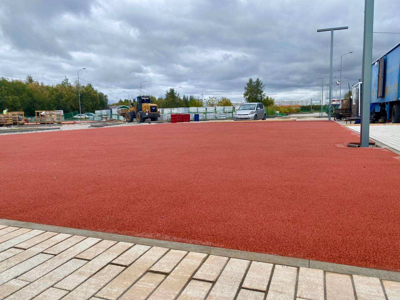 Работы ведутся в соответствии с утвержденным графиком. Подрядчик продолжает укладку тротуарной плитки, установку бордюрного камня, подготовку к озеленению территории, а также монтаж опор наружного освещения и светильников.