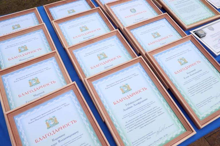Во время праздничного мероприятия состоялось вручение Почетных грамот Министерства спорта Российской Федерации, Департамента физической культуры и спорта Ханты-Мансийского автономного округа – Югры, удостоверения мастера спорта России, а также награды за активное участие в волонтерской работе в период пандемии.