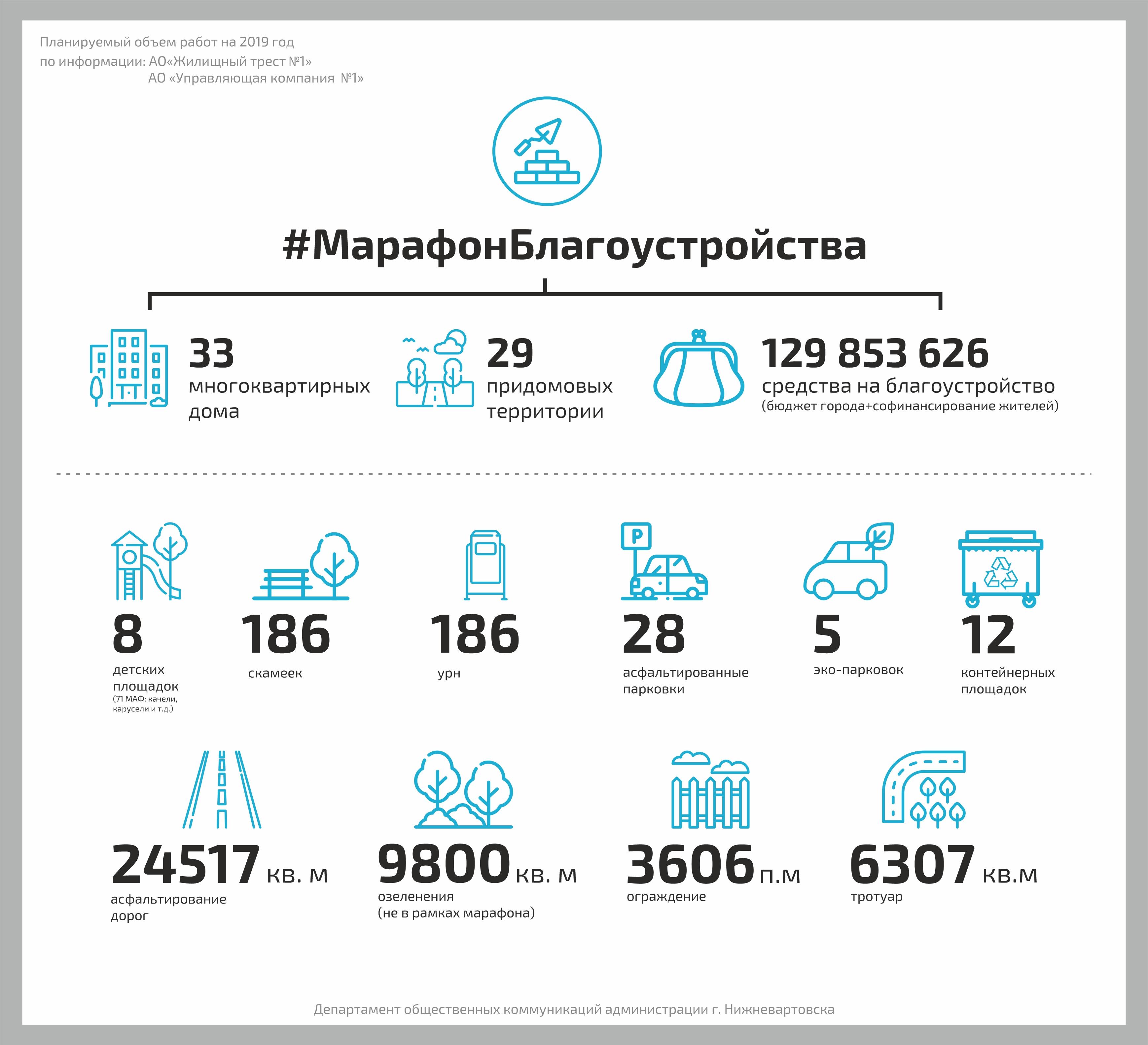 «Марафон благоустройства» - уникальный для Нижневартовска и Югры в целом проект. Благодаря благоустройству за два года преобразилось 77 дворов (более 100 многоквартирных домов).