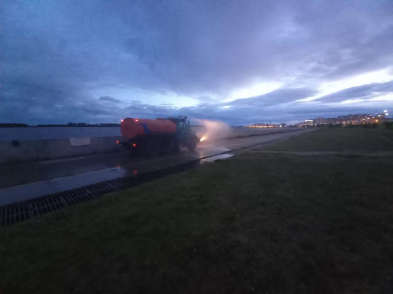 При дезинфекционной обработке применяется средство «Этоксамин». Мероприятия выполняются муниципальным бюджетным учреждением «Управление по дорожному хозяйству и благоустройству города Нижневартовска» ежедневно после 22 часов.