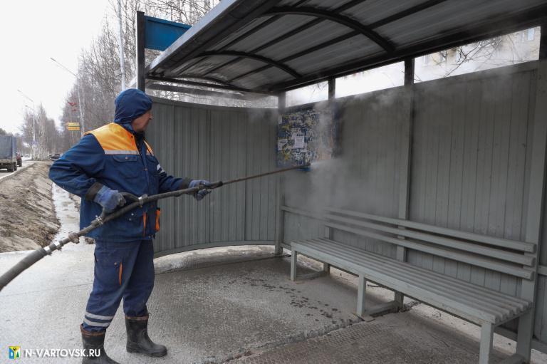 Сотрудники МБУ «Управление по дорожному хозяйству и благоустройству города Нижневартовска» приступили к мытью и очистке остановок общественного транспорта от рекламных буклетов и объявлений. Как рассказал заместитель директора департамента ЖКХ администрации города Сергей Лях, в первую очередь эти мероприятия проводятся на наиболее оживленных участках, а также по обращениям граждан. В среднем, в зависимости от загрязнения, бригады за день успевают обработать до 4 павильонов.