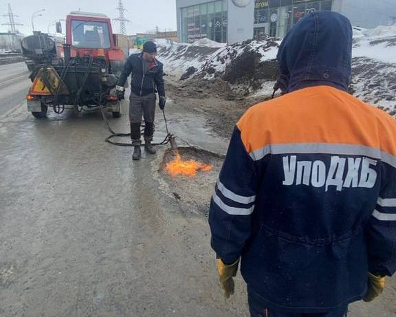 В Нижневартовске дорожные службы продолжают ликвидацию выбоин, образовавшихся после зимы. Рабочие проводят аварийный ремонт, предотвращающий дальнейшее разрушение асфальта.