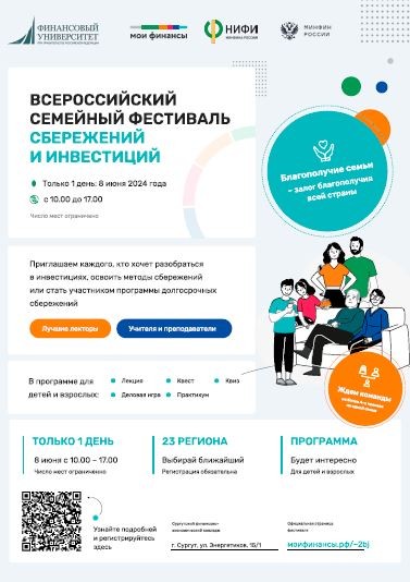 Региональный этап Всероссийского семейного фестиваля сбережений и инвестиций состоится 8 июня в Сургуте.