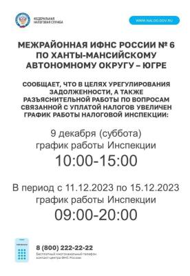 График работы налоговой инспекции с 09.12.2023 по 15.12.2023