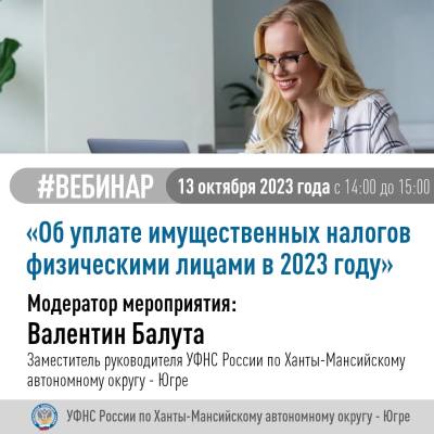 13.10.2023 состоится вебинар на тему "Об уплате имущественных налогов физическими лицами в 2023 году".