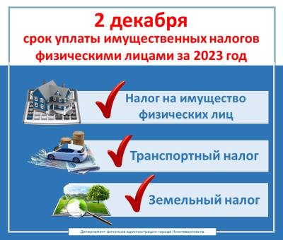 Срок уплаты имущественных налогов – не позднее 1 декабря 2023 года.