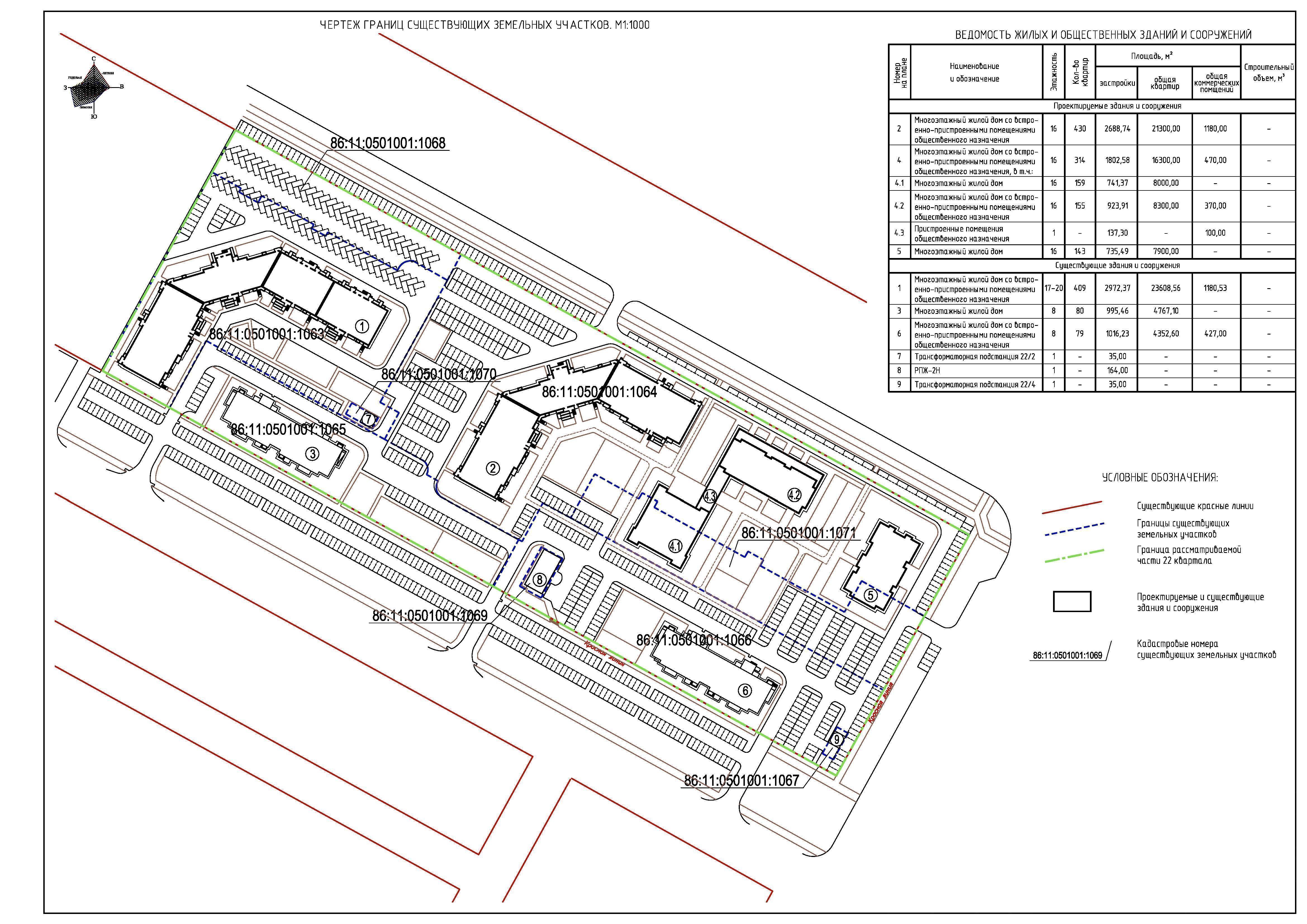 Утвержден постановлением администрации города Нижневартовска от 22.07.2019 №571 "Об утверждении проекта внесения изменений в проект планировки территории Восточного планировочного района (III очередь строительства) в части квартала 22 и проекта межевания территории квартала 22 города Нижневартовска"