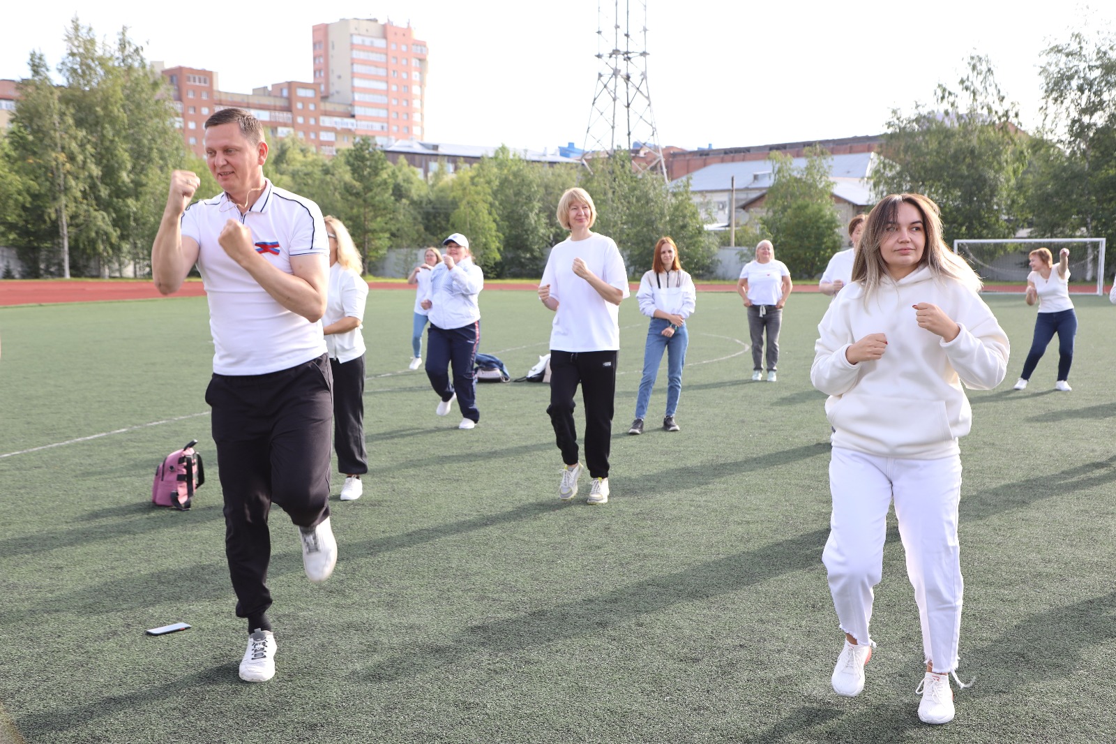 Старт праздничным мероприятиям дали в 8 часов спортсмены на Центральном стадионе (улица 60 лет Октября, 20/1). Они провели общегородскую мегазарядку. Присоединились все желающие