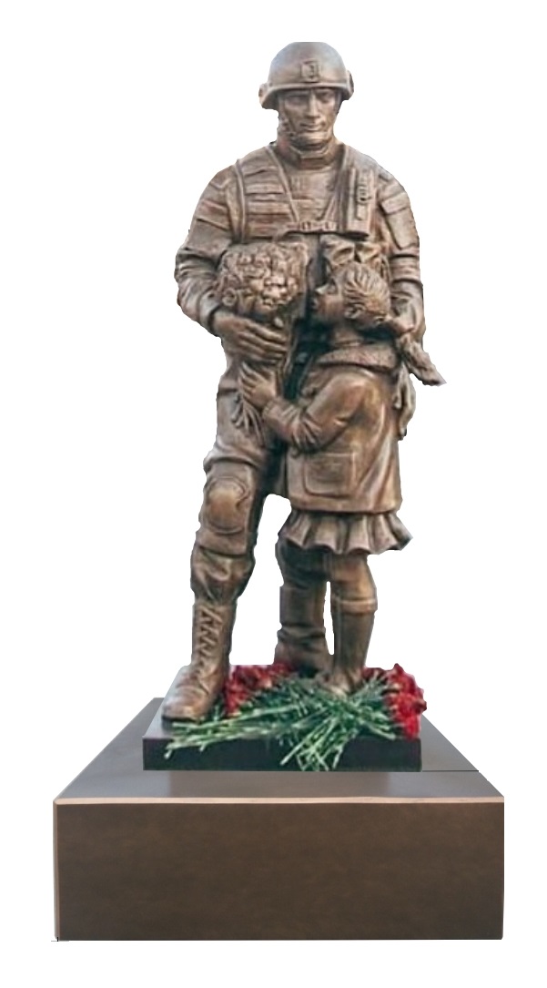 Данный монумент, носивший название «Добрые люди», уже установлен в нескольких городах России и стал символом уважения и благодарности к тем, кто исполняет свой долг перед Отечеством. Он представляет собой фигуру солдата с цветами в руках, рядом с которым стоит девочка, олицетворяющая надежду и мирное будущее.