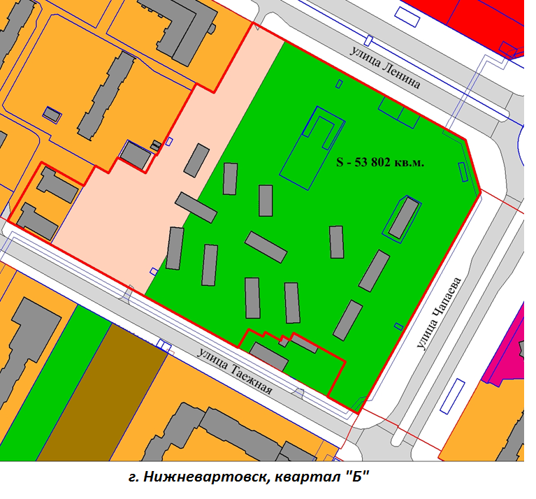 Администрация города Нижневартовска объявляет о проведении аукциона, открытого по составу участников и форме подачи заявок, на право заключения договора о развитии застроенной территории квартала «Б», ограниченной красными линиями улиц Ленина, Чапаева, Таежной и границами земельных участков с кадастровыми номерами 86:11:0101013:568, 86:11:0101013:571, площадью 53 802 кв.м.